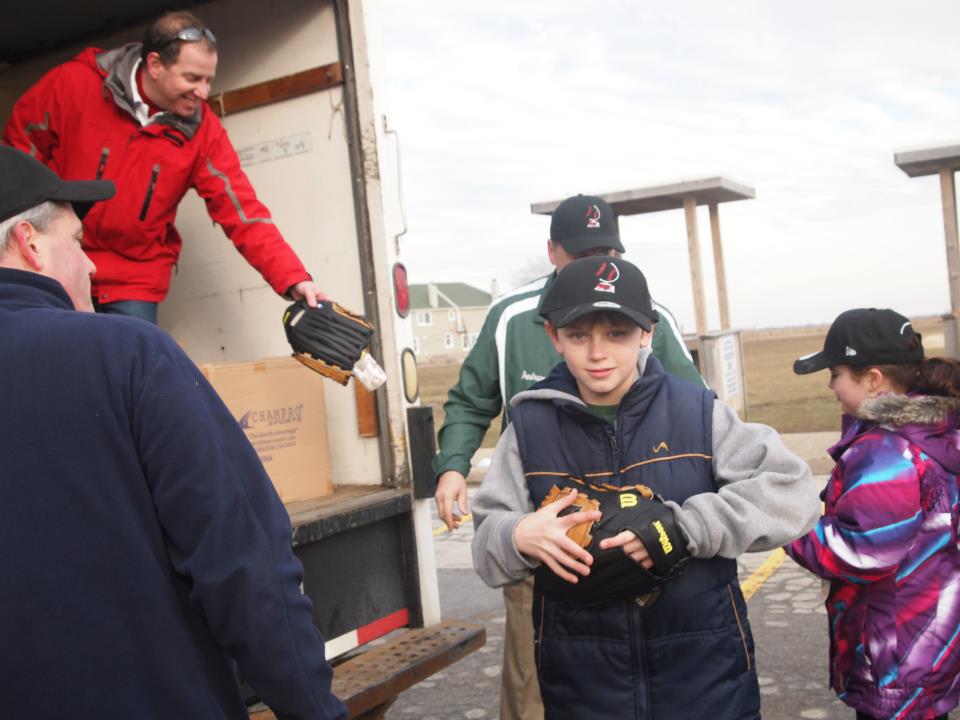 On Wednesday, February 13 we really did feel like the Red Cross of Baseball. That day, our operations manager, Tom Schoenfelder, drove a truck full of gear and uniforms from Harleysville, PA to Long Island, NY to meet the smiling and warm faces of the volunteers and children of Oceanside and Island Park Little Leagues. Together, he and I offloaded boxes, Red Cross style into the arms of the league administrators and parents whose leagues lost everything in Hurricane Sandy.